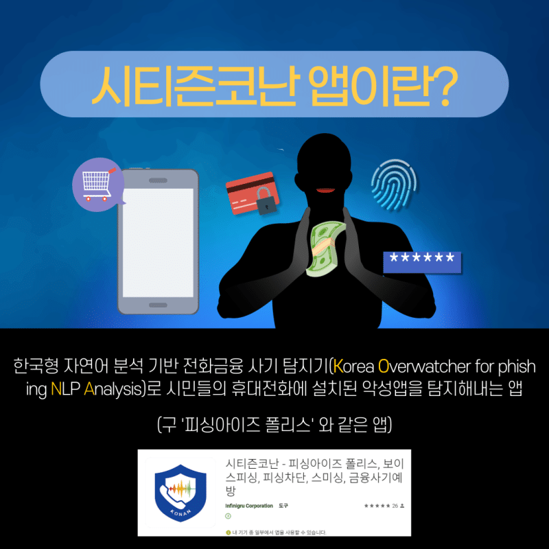 시티즌 코난은 경찰청과 ㈜인피니그루가 공동으로 개발한 보이스피싱 방지 애플리케이션입니다.