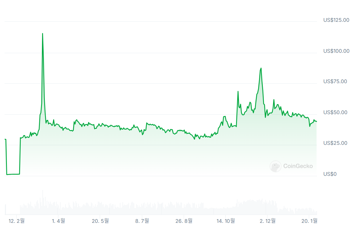 2025년 1월 27일 기준, 파이코인의 가격은 약 44.01달러로,